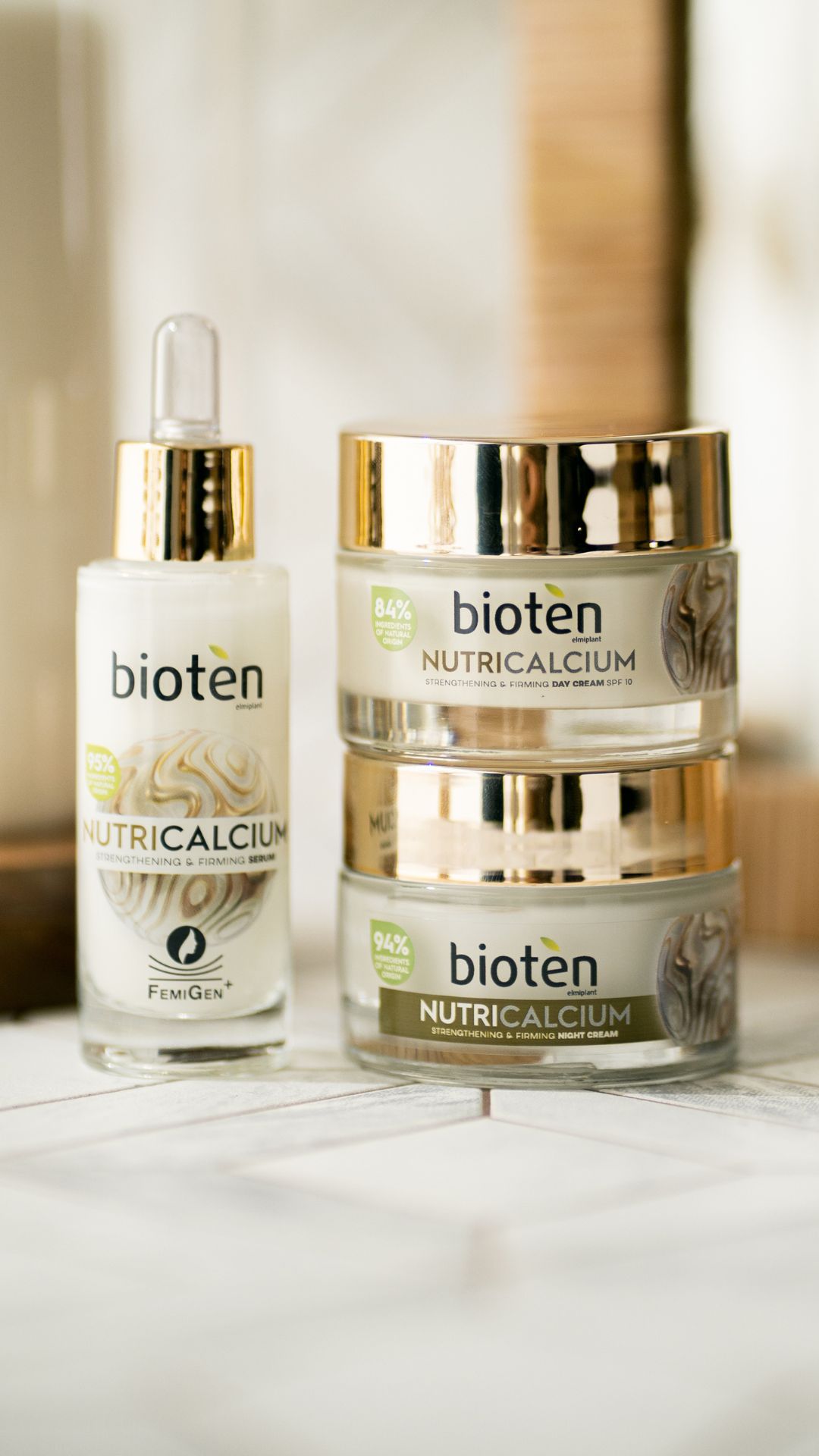 A Gama Nutri Calcium tem um cuidado fortificante e recuperador de elasticidade, especialmente desenvolvido para mulheres na menopausa e pós-menopausa. Com até 95% de ingredientes de origem natural, combina Cálcio, Vitamina B5 e o ativo natural FemiGen+, que reforçam a barreira cutânea, melhoram a elasticidade e ajudam a suavizar rugas profundas, de forma a deixar a pele mais firme e nutrida.